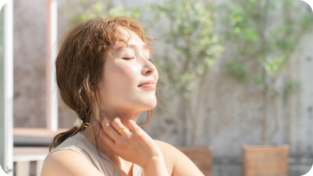 洗顔後、手のひらでやさしくなじませます。乾きやすい部分は重ねづけして、肌をやわらかく整える準備を。