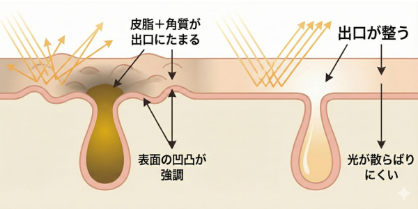 でもその後、皮脂と角質が混ざると、出口の中で固まりやすくなります。